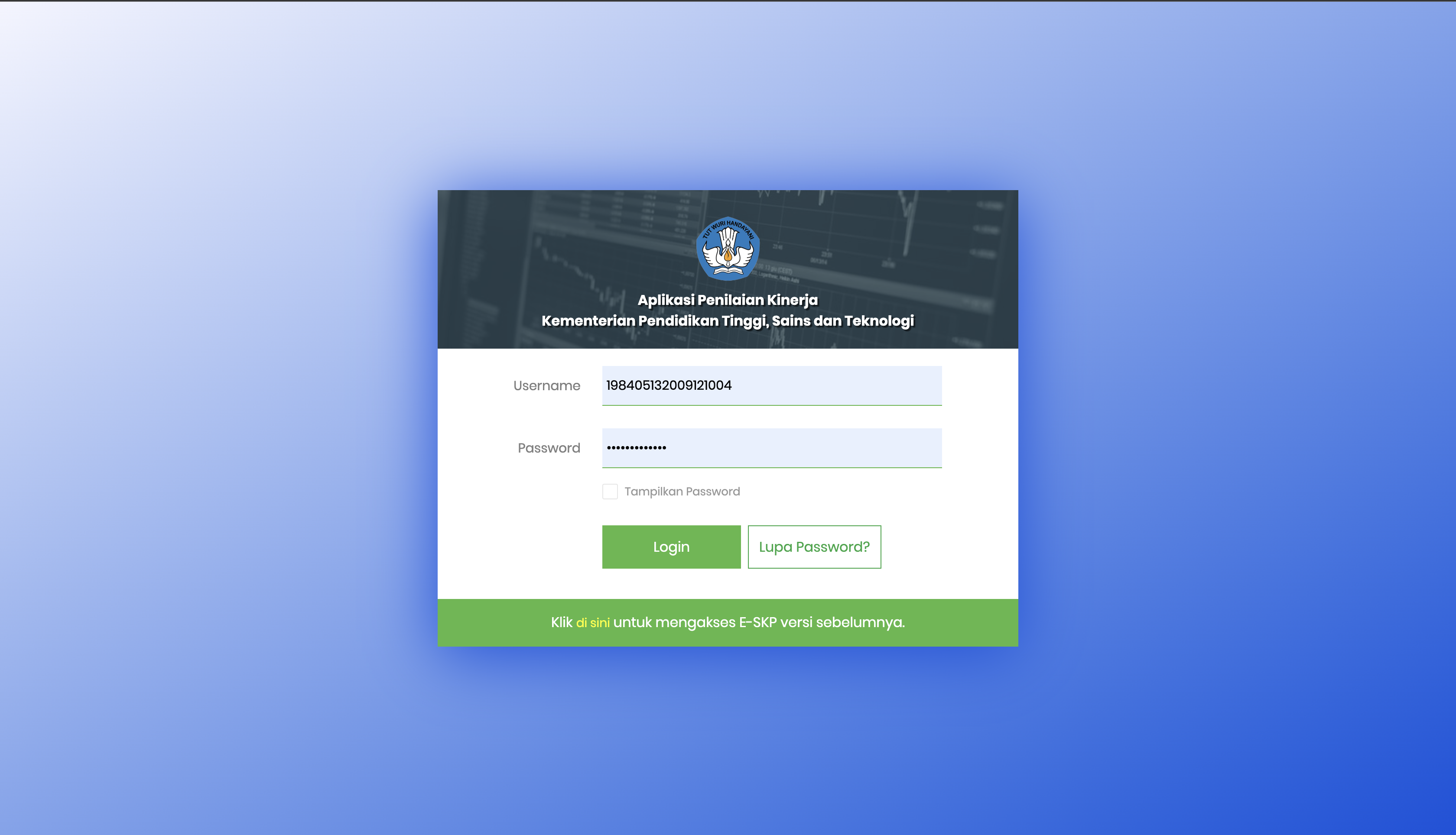Portal Pengisian Sasaran Kinerja Pegawai (eSKP) adalah sebuah sistem daring yang dirancang untuk memudahkan pegawai dalam mengisi, memantau, dan mengelola Sasaran Kinerja Pegawai secara efisien dan terintegrasi.